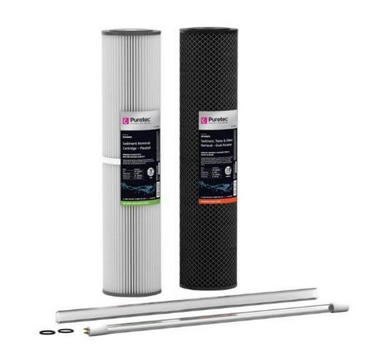 Hybrid maintenance kit, Puretec suits G7 / R2 includes 1 x 20" Maxiplus PL05MP2, 1 x 20" Maxiplus Carbon DP10MP2, 1 x UV replacement lamp RL6, 1 x replacement quartz...