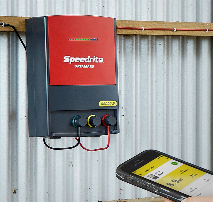 The Speedrite 46000W Mains Energizer is perfect for farmers that want a great performing energizer with an intuitive interface. It features Bluetooth and Wi-Fi compatibility allowing farmers to monitor and control their energizer using the Datamars Livestock Farm App from a phone.