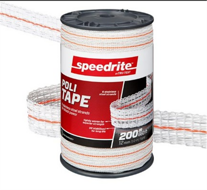 6 stainless steel strandsIdeal for temporary fencing and strip grazingTightly woven for superior strength12 mm width with orange and white weave for high visibilityUV stabilised for long lifeAvailable in white...