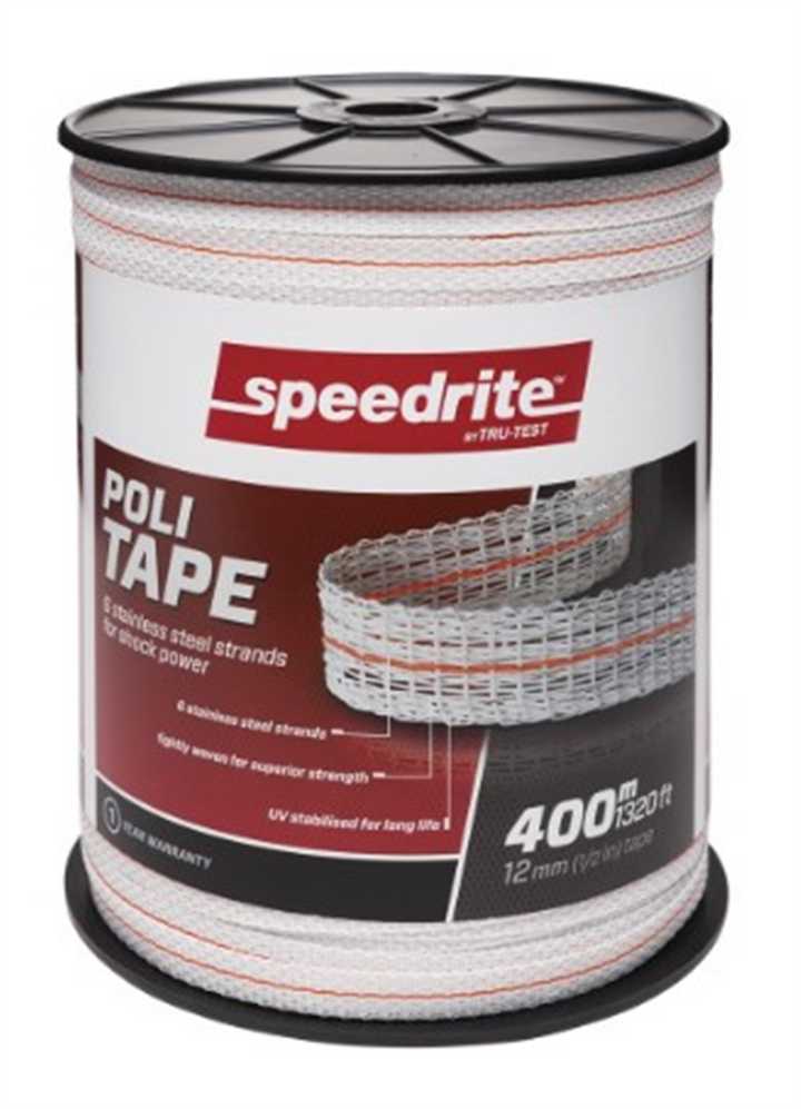 6 stainless steel strandsIdeal for temporary fencing and strip grazingTightly woven for superior strength12 mm width with orange and white weave for high visibilityUV stabilised for long lifeAvailable in white...