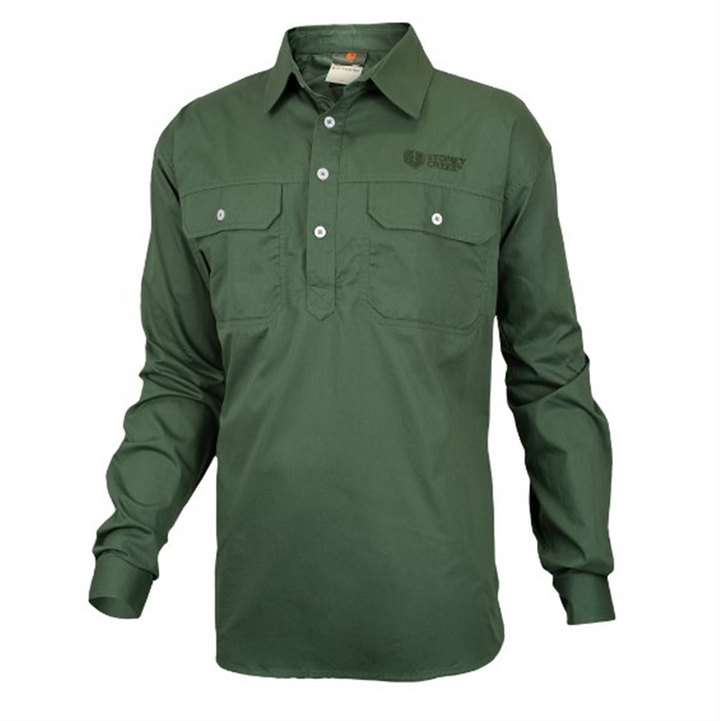 The Done & Dusted Shirt is your new staple work shirt, durable and comfortable, the 100% cotton fabric will keep you cool and comfortable, while the pullover design allows for easy on-off. Chest storage pockets and a stiff collar to protect your neck from the sun.