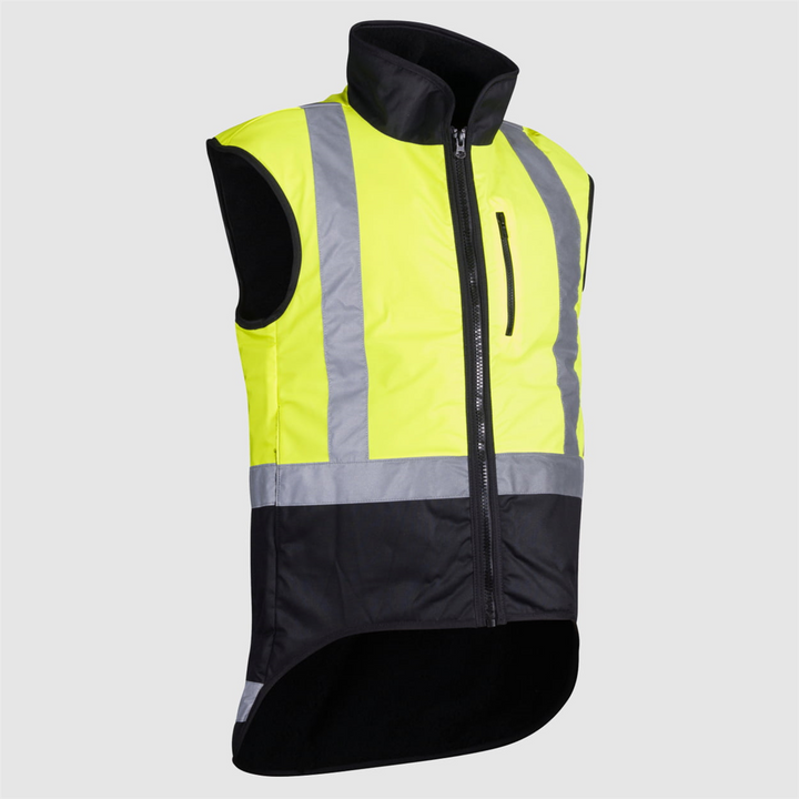 Styx Mill Yellow High Vis Vest with brown oilskin wax; a tough, durable material synonymous with performance and quality. Made with the same popular design as all Styx Mill Oilsin Wax vests, but with fluoro and reflective tape to comply with standards. The perfect blend of rugged functionality and style, keeping you warm and comfortable when you’re out there facing the elements.